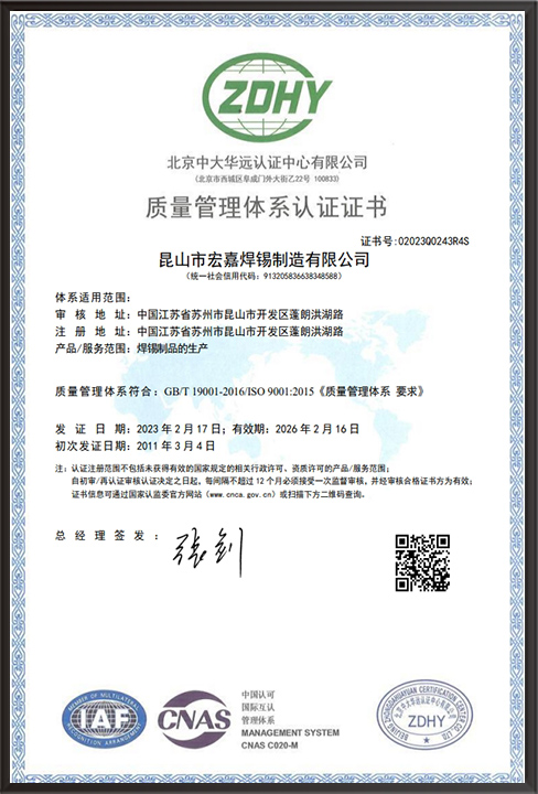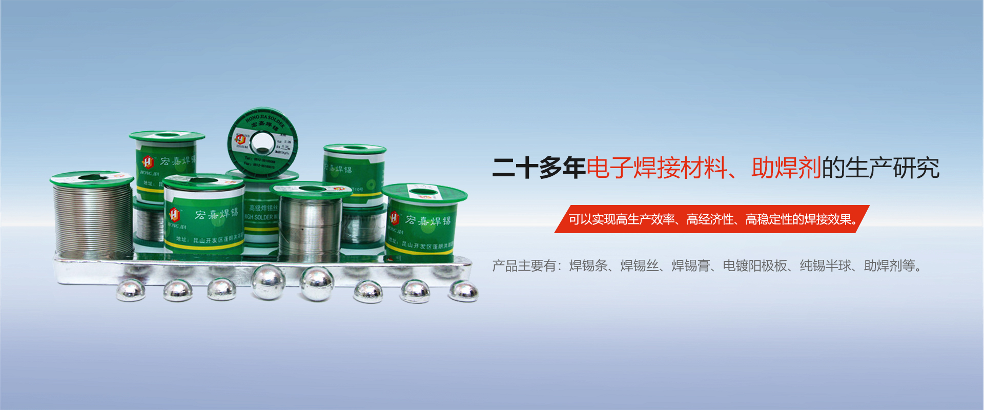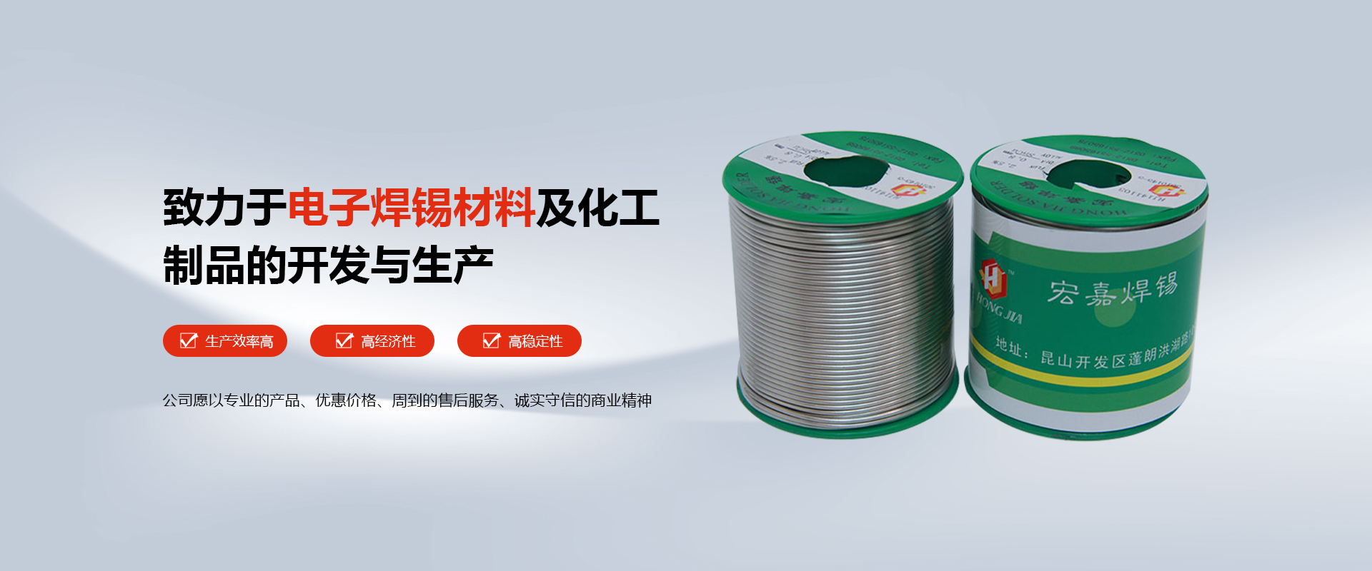 昆山市宏嘉焊錫制造有限公司成立于二零零七年,從事精密電子焊錫材料及化工制品的開發與生產,產品主要有:焊錫條、焊錫絲、焊錫膏、電鍍陽極板、純錫半球、助焊劑等。